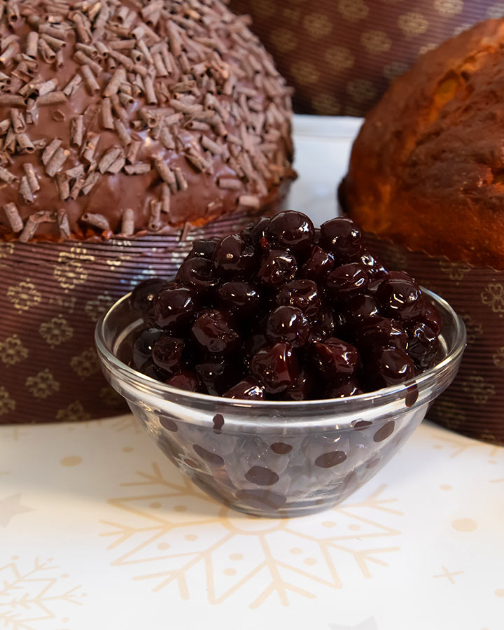 Amido di Mais, Amido di Riso, Zucchero, Fecola di Patata, Farina di Riso, Uova, Burro senza Lattosio, Glucosio, Farina di Soia, Amarene Candite, Cioccolato Fondente (Burro Cacao, Massa Cacao, Zucchero, Lecitina di Soia), Lievito Madre, Xantana, Psyllium, E464, Aromi Naturali (Vaniglia, Agrumi), Sale.